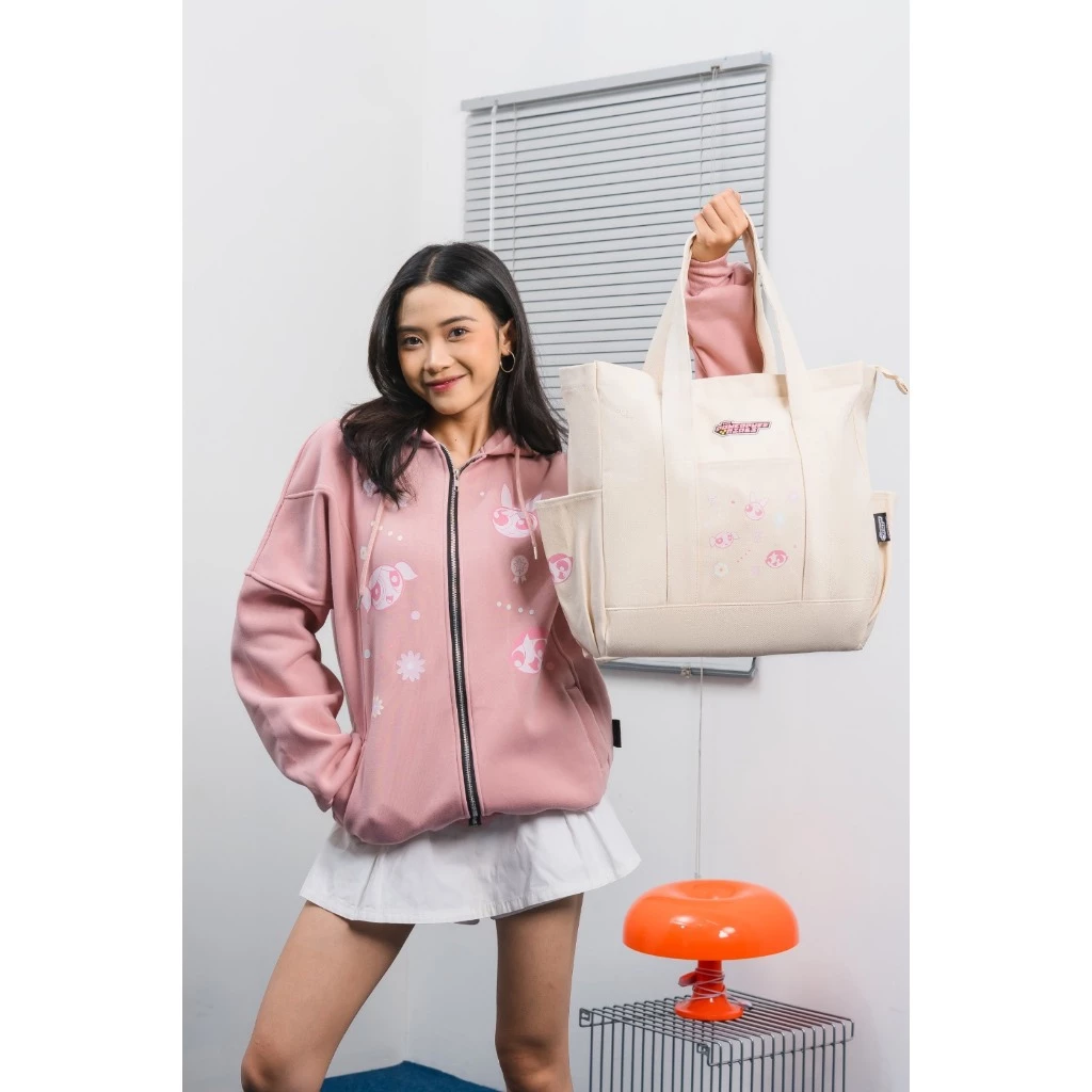 The Powerpuff Girls Raya Canvas Totebag Premium | Tas Cream Laptop Kerja Kuliah Jalan Wanita