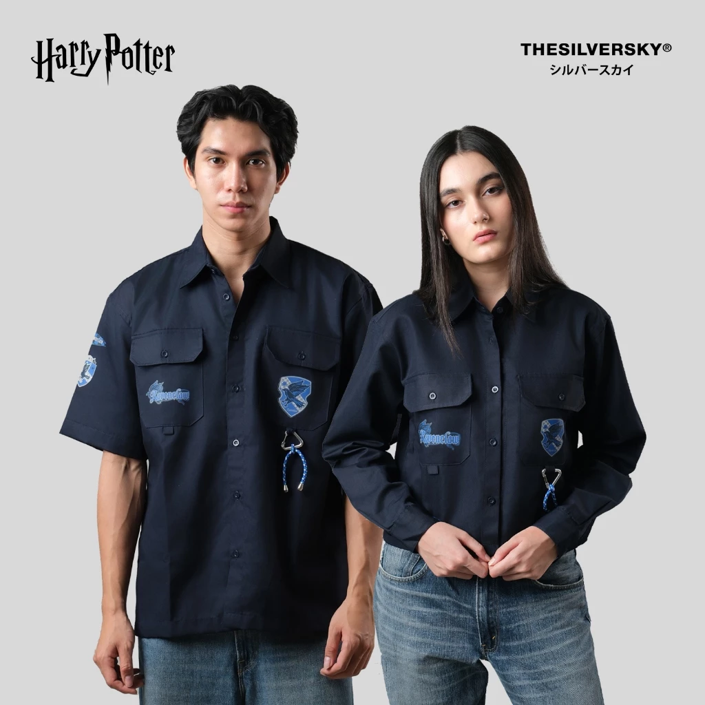Thesilversky Ravenclaw Navy Workshirt | Harry Potter Official Kemeja Pria Wanita Crop
