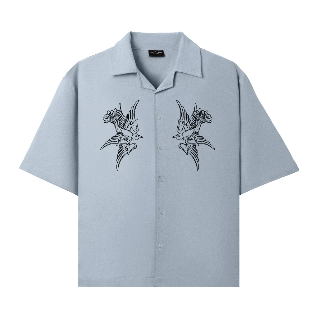Thesilversky Swallows Shirt Boxy Linen Oversized | Kemeja Premium Men Pria Birds