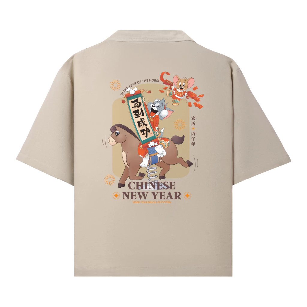 Thesilversky Tom Jerry Horse Chinese New Year Shirt Boxy Oversized | Kemeja Pria Premium